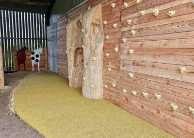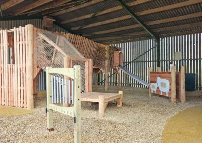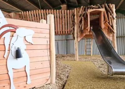 There’s been a massive glow-up to the farm of late with a super tree climbing wall, interactive animal wall and towers with slide. The giant Bale Climb has been rebuilt too with 140′ of tunnels and treasure hunt. New in the playground are talking tubes with sensory musical chimes, forest poles and tractor wheel. There’s also a new big blue wooden tractor ![]()
