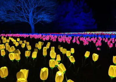 The big guns are out and the NEW (and cheap!) Illuminate Light Trail at Millets Farm is definitely challenging Blenheim to a dual. It has all the interesting features, music and wonder but on a much smaller scale. It still has the wow factor but with a small w, whereas Blenheim is definitely a capital W – fine with me!