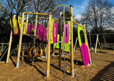 This playground at Millennium Hall has been begging for a refurb for quite some time and it was worth the wait! All the old wooden play equipment has been replaced by bright, colourful new equipment and the addition of extra swings too. There’s still a play frame for the older and younger children, plus the climbing wall. There’s lots to keep children of all ages busy – make sure you bring a ball for the basketball court and football for the huge field with goals. There’s also table tennis, fast zip wire (my bum now touches the floor when I’m on it, a new experience I’m not happy about!) and hall.